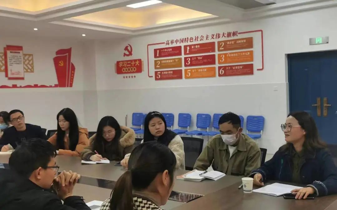 ▲青年教师认真倾听会议